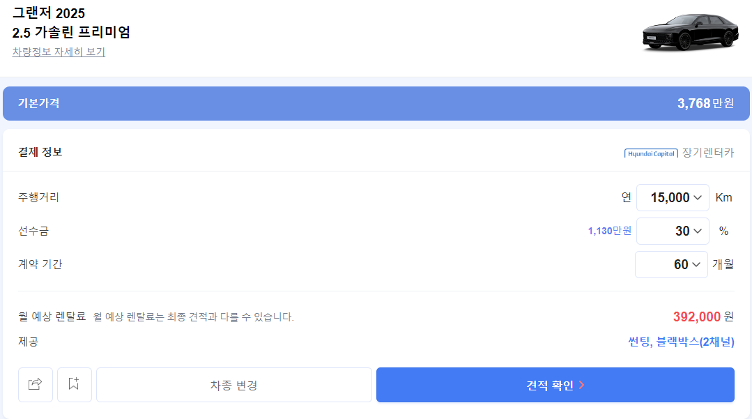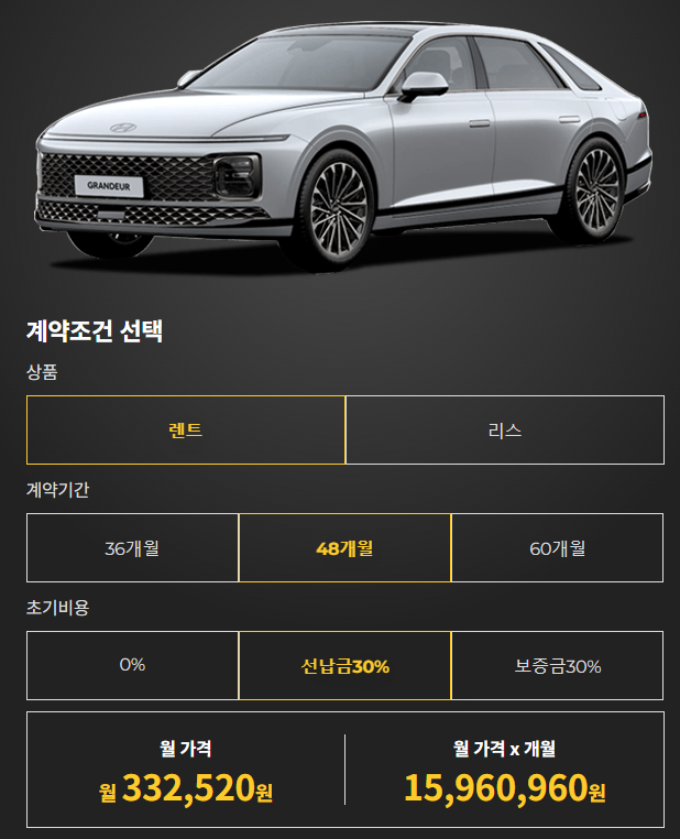 그랜저 장기렌트: 가격비교