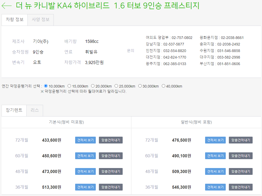 차량 구매보다 카니발 장기렌트를 하실 경우 자동차세, 보험 등에 장점이 있어서 많이들 장기렌트를 선택합니다. 3년 이상 장기렌트를 하실 경우 렌트하는 업체와 가격이 매우 중요합니다!! 무조건 업체별로 가격비교를 하신다음에 계약을 하셔서 20~30만원 절약을 하시기 바랍니다.